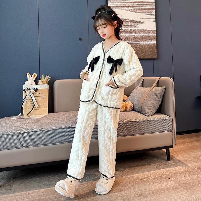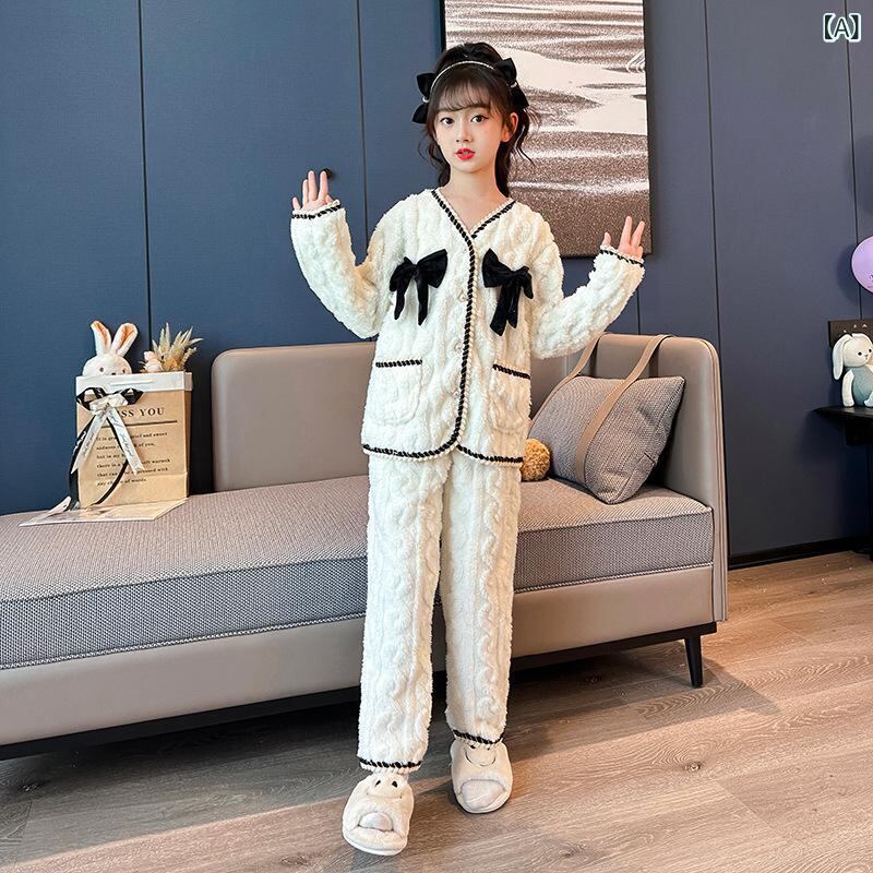 子供用 フランネル パジャマ 女の子 厚手 上下セット 小香風 ルームウェア 冬 暖か 110 120 130 140 150 160 170 かわいい プリンセススタイル 部屋着