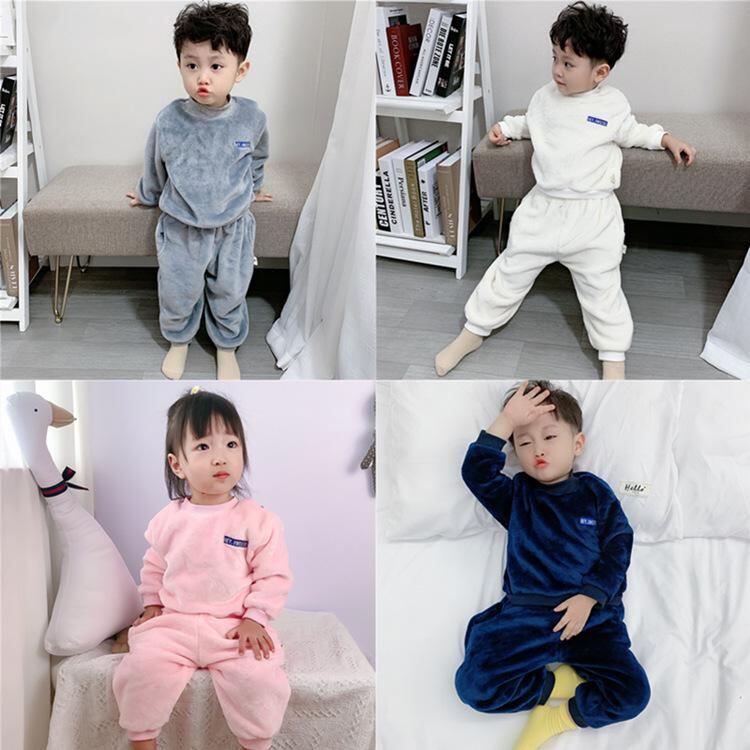 子供用パジャマ 上下セット 秋冬 厚手 フランネル 暖かい 長袖 部屋着 寝巻き 男の子 女の子 グレー 嫩粉 紺色 米白 90 100 110 120 130