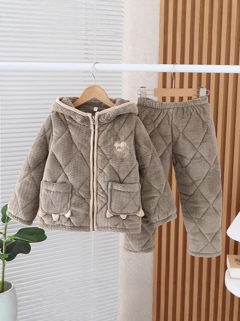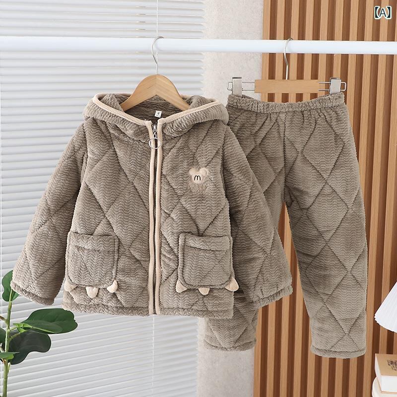 子供用パジャマ フランネル セットアップ キッズ 男女兼用 上下セット 厚手 防寒 暖かい ルームウェア 寝巻き ジップアップ 無地 春秋冬 80 90 100 110 120 130 140 150 160 165