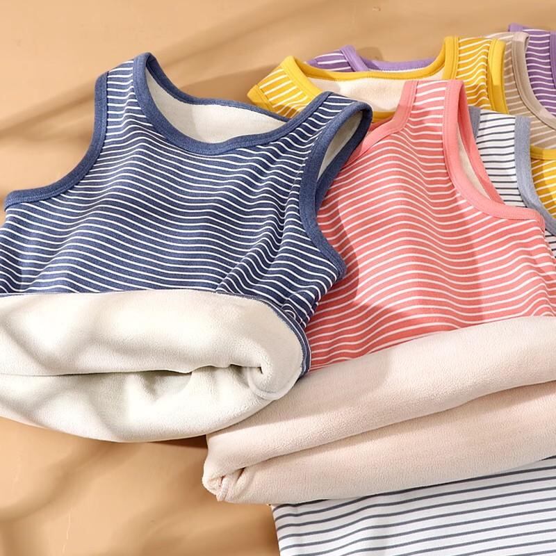 子供用ベスト キッズ ボーイズ ガールズ 防寒 インナー フリース ストライプ あったか 暖か 重ね着