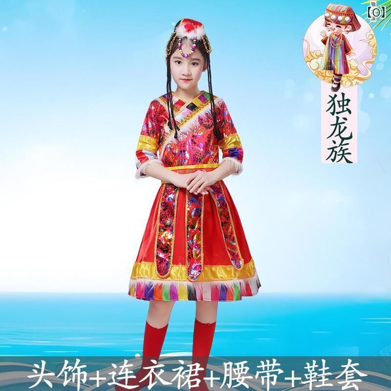 子供用民族衣装 土家族 壮族 彝族 傣族 蔵族 男女 モンゴル 瑶族 苗族 ダンス衣装 ポリエステル プリーツ 110 120 130 140 150 160