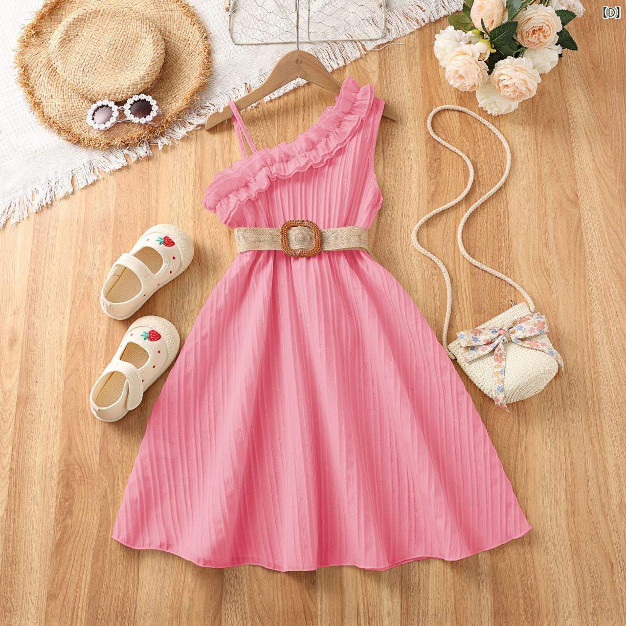 ワンピース 子供 女の子 プリンセスドレス Aライン ノースリーブ チュールスカート 混紡 発表会 結婚式 パーティー 春夏 レッド ピンク系