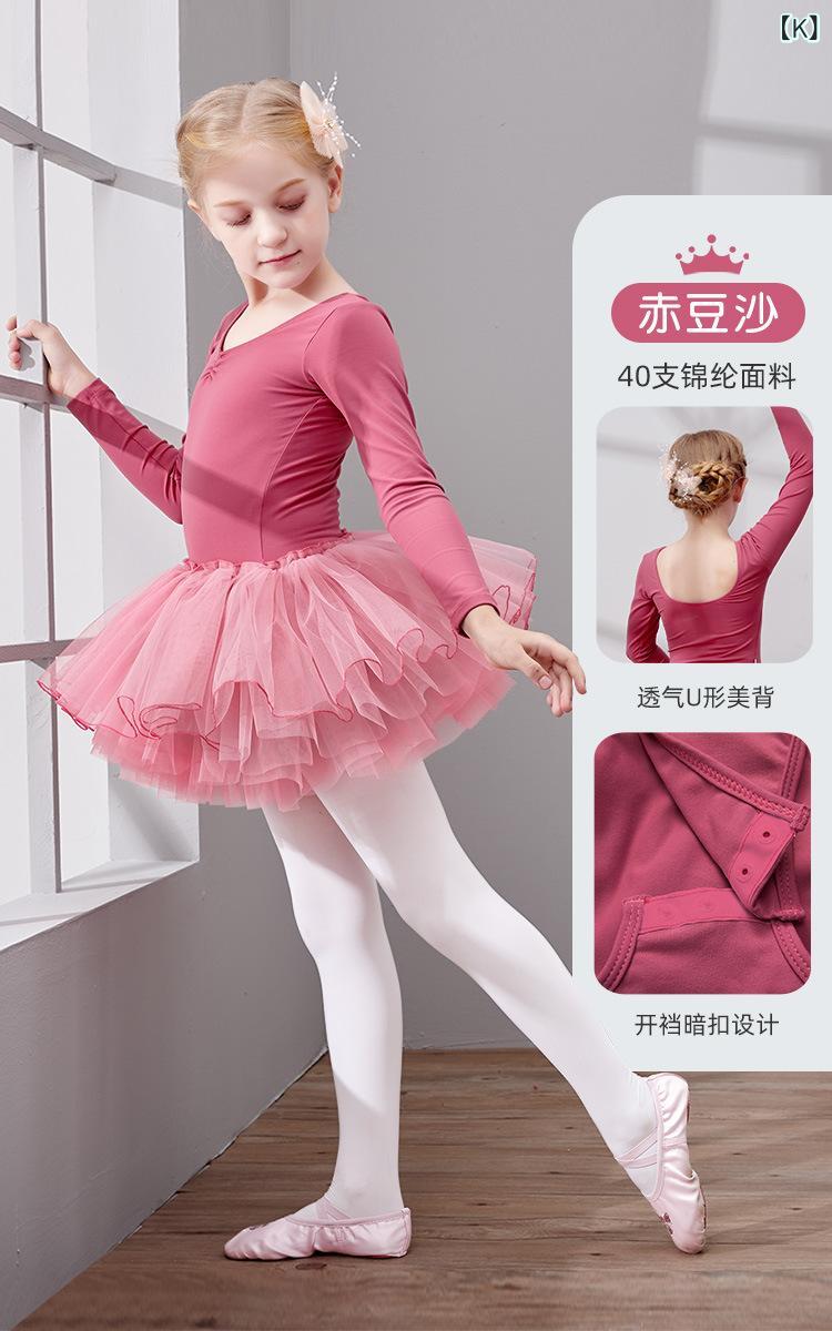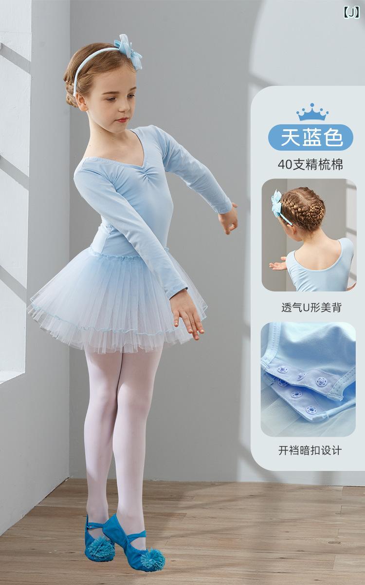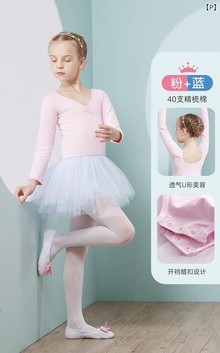 子供 バレエ レオタード 長袖 チュールスカート 練習着 中国舞 発表会 春秋 綿 伸縮性 110cm 120cm 130cm 140cm 150cm 160cm 170cm 180cm