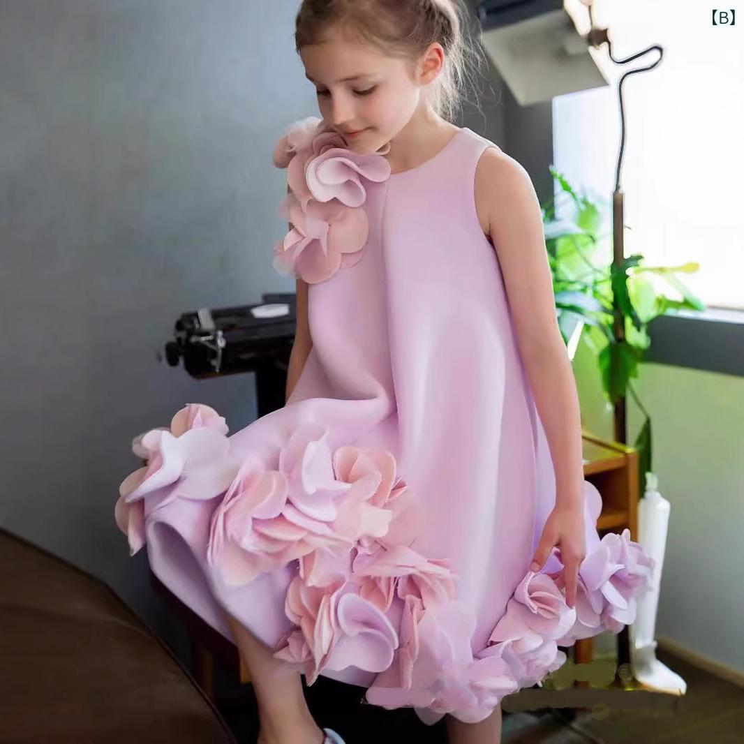 ワンピース 子供 女の子 ノースリーブ 3D 立体 花柄 コットン プリンセス スカート かわいい おしゃれ 春夏 ブラック ピンク系 ホワイト ブルー レッド 80cm 90cm 100cm 110cm 120cm 130cm 140cm 150cm