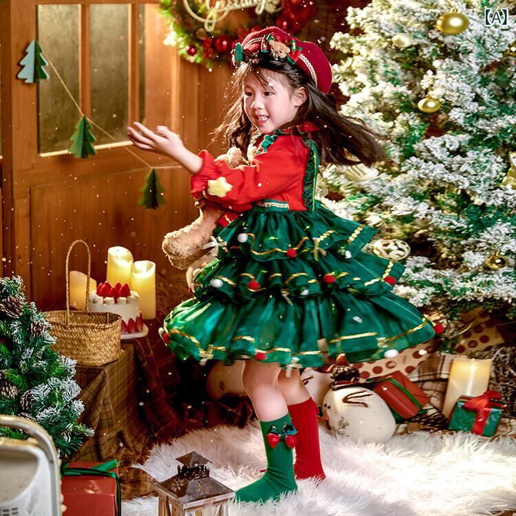 ワンピース キッズ クリスマス ロリータ 女の子 子供 秋冬 チュール スカート 発表会 ベルベット ベレー帽 帽子 ソックス