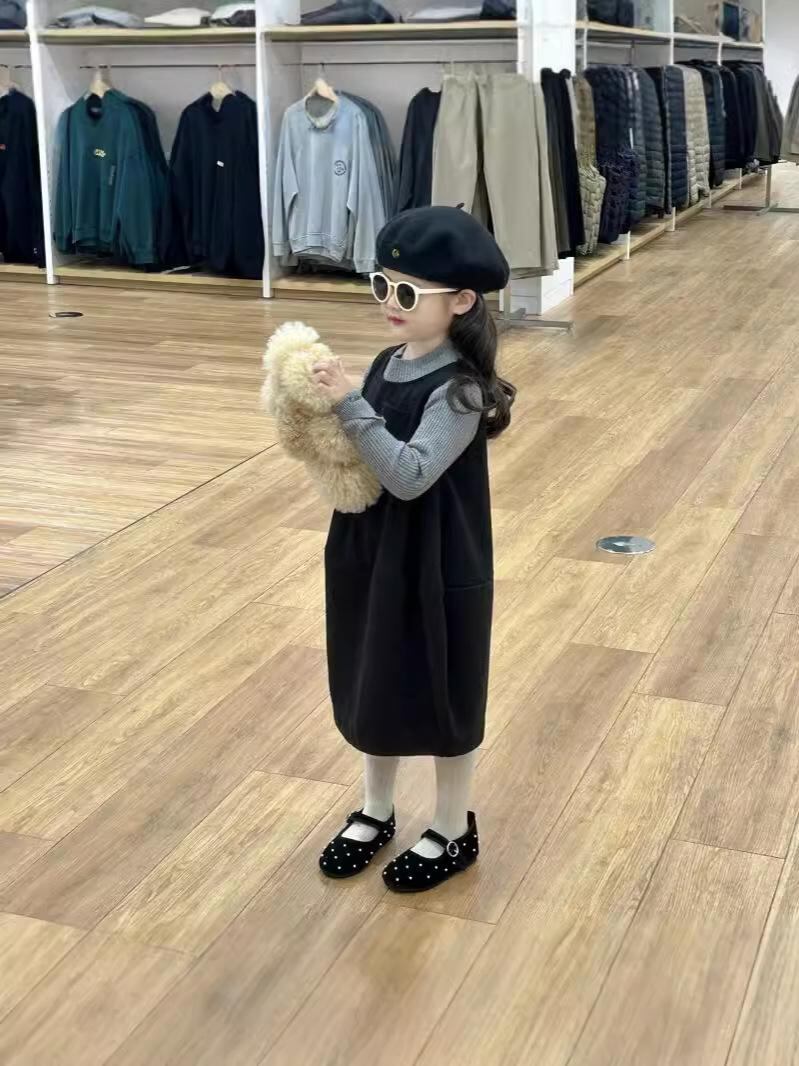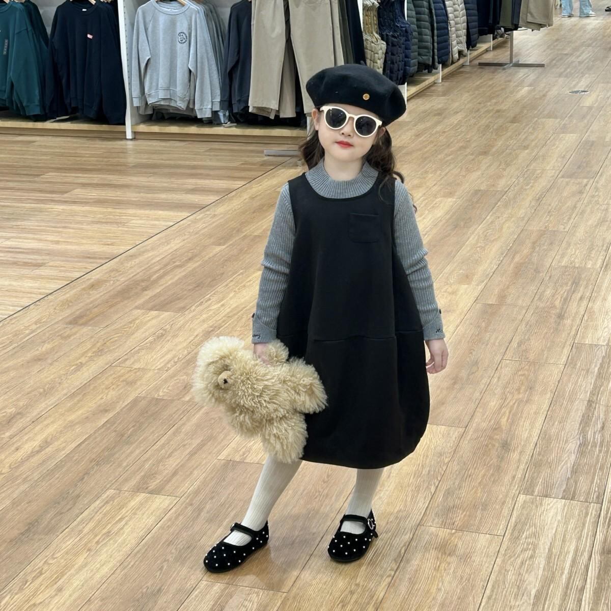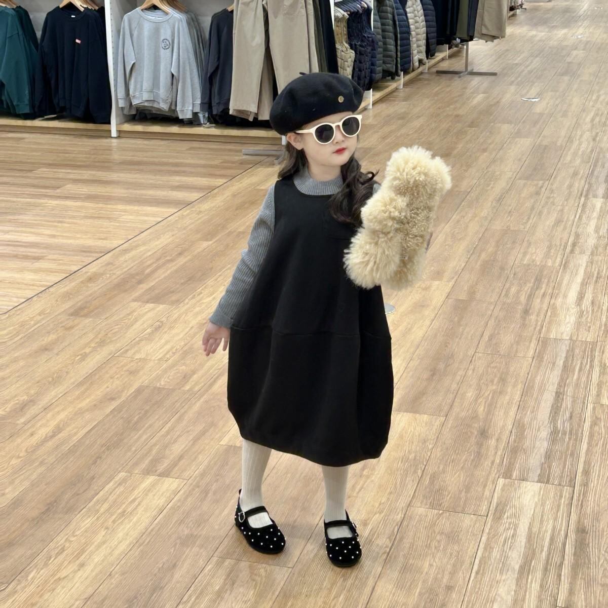 ワンピース 女の子 秋冬 子供服 毛呢 背心ワンピース ランタンスカート 厚手 高級感 かわいい 裏地コットン チュニック ブラック グレー系 90cm 100cm 110cm 120cm 130cm 140cm