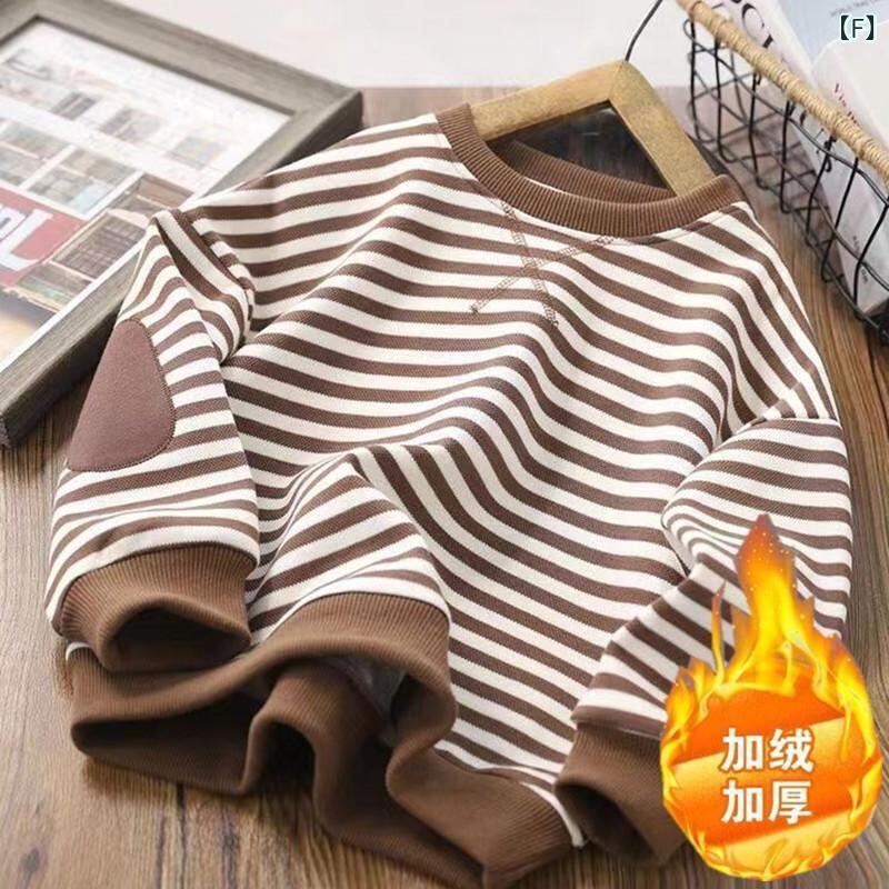 子供服 スウェットシャツ 春秋 男女兼用 ストライプ トップス 裏起毛 韓国風 かわいい おしゃれ 普段使い 通園 通学 伸縮性 やわらかい