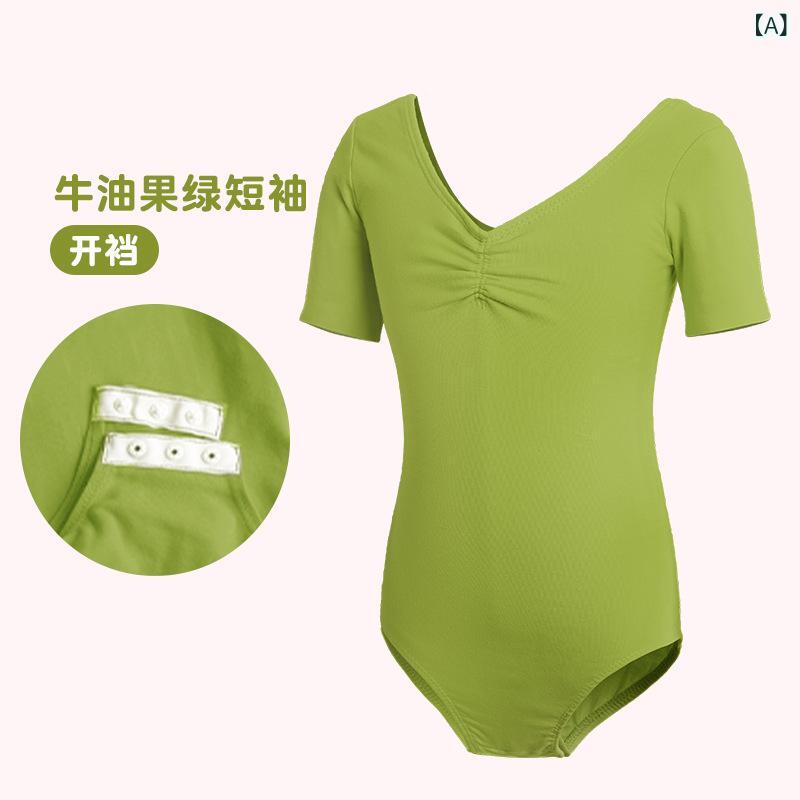 子供 バレエ レオタード 半袖 女の子 練習着 体操服 新体操 中国舞 ダンス衣装 女児 レッスン着 短袖 綿 ストレッチ かわいい 発表会 舞台衣装 105 110 120 130 140 150 160 170cm