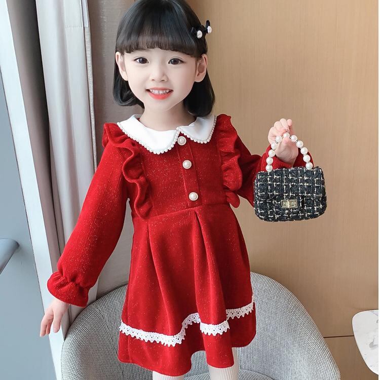 ワンピース キッズ 女の子 プリンセススタイル 秋冬 ポリエステル 長袖 チュールスカート かわいい おしゃれ レッド ピンク 100cm 110cm 120cm 130cm 140cm 150cm