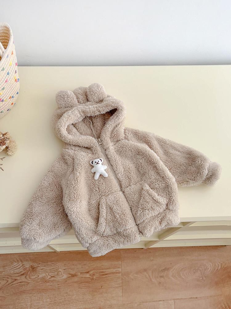 ベビー服 子供用 くま耳フード付きボアジャケット 赤ちゃん 男女兼用 アウター 冬 防寒 暖かい 裏地ポリエステル100% かわいい 韓国風 幼児 普段使い お出かけ着 ベージュ コーヒー色 66 73 80 90 100