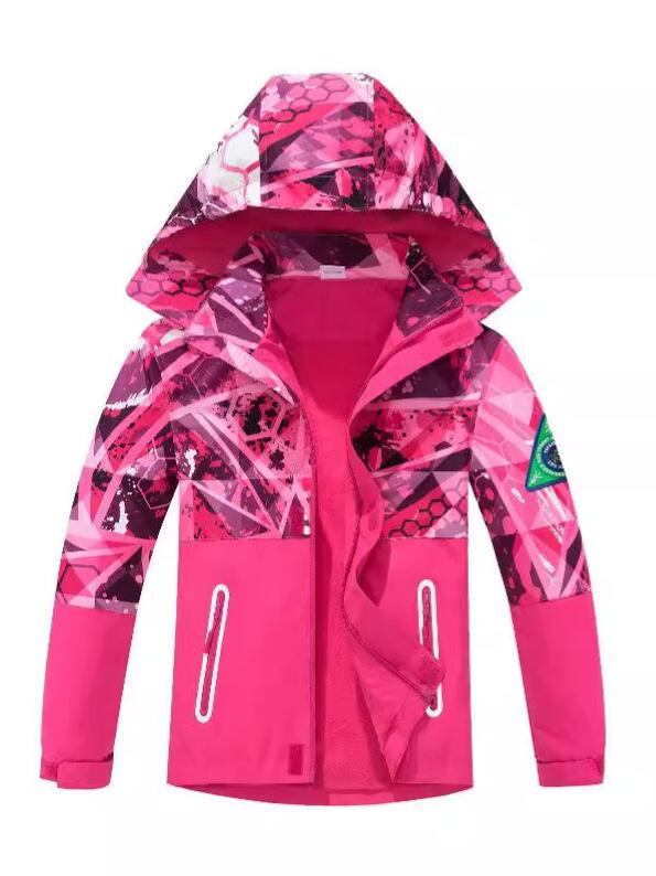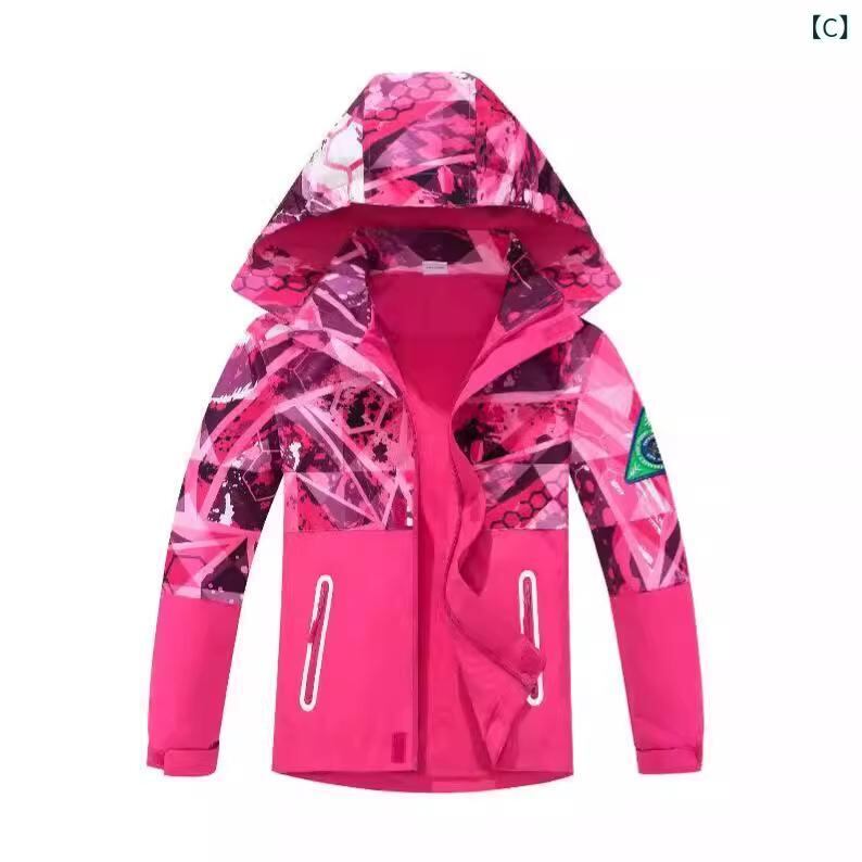キッズ アウター 子供用 防水ジャケット 防風 フリース裏地 フード付き ジャンパー アウトドア 迷彩柄 ポリエステル 男女兼用 グレー ピンク 110cm 120cm 130cm 140cm 150cm 160cm 170cm
