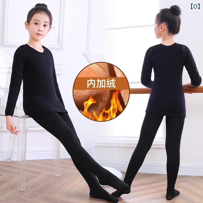 子供用ダンス衣装 秋冬 肌色 インナーシャツ ガールズ バレエ レオタード 裏起毛 暖かい タイツ 上下セット 練習着 発表会 90 100 110 120 130 140 150 160