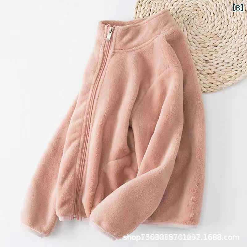 子供用フリースジャケット 男女兼用 アウター 立襟 コーラルベルベット ジップアップ カーディガン 秋冬 厚手 暖かい ミドル丈 トップス