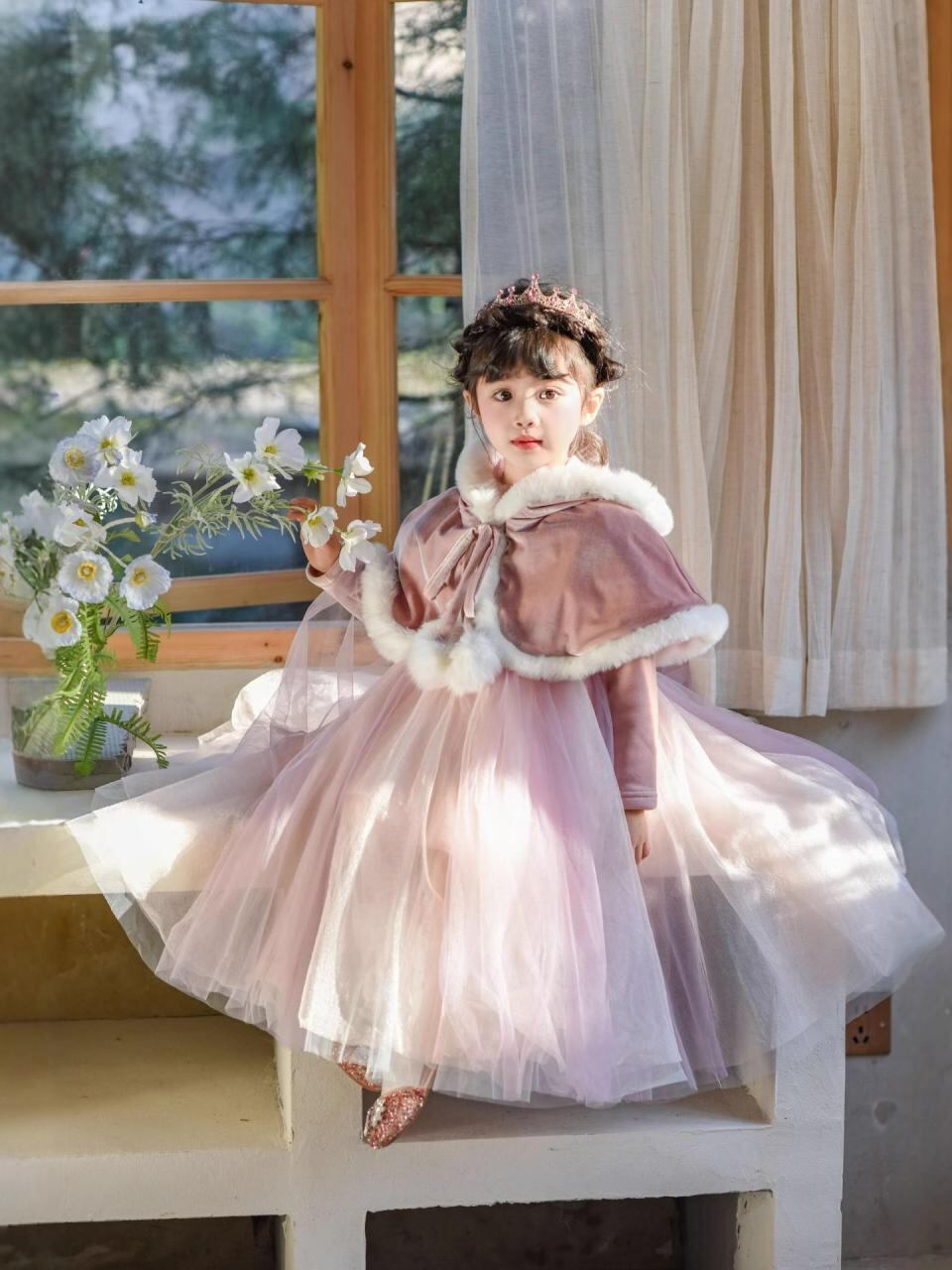 ワンピース 子供 女の子 長袖 チュールスカート チュールワンピース プリンセスドレス ラプンツェル風 コスチューム ハロウィン 仮装 発表会 演奏会 結婚式 パーティー イベント 衣装 光る 伸縮性 コットン 春秋