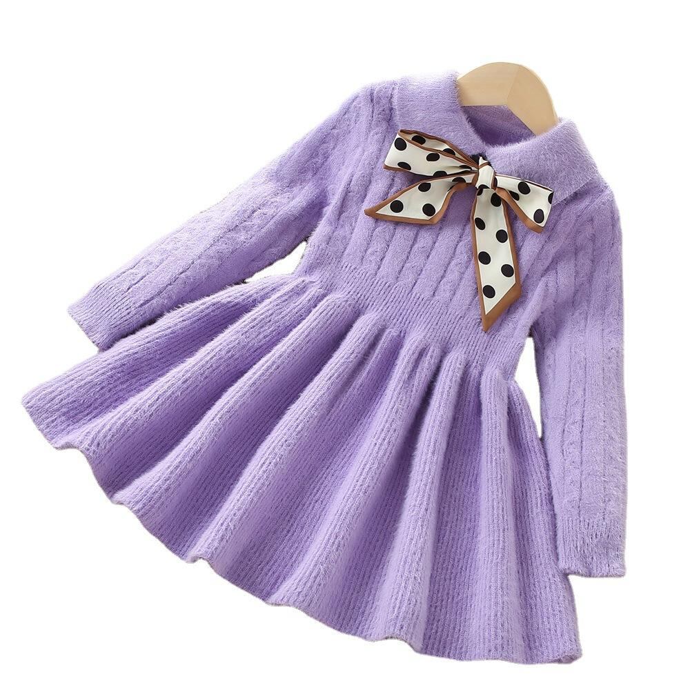 ワンピース キッズ 女の子 ニット 秋冬 子供服 長袖 無地 プリンセス風 かわいい おしゃれ 普段着 発表会 お出かけ