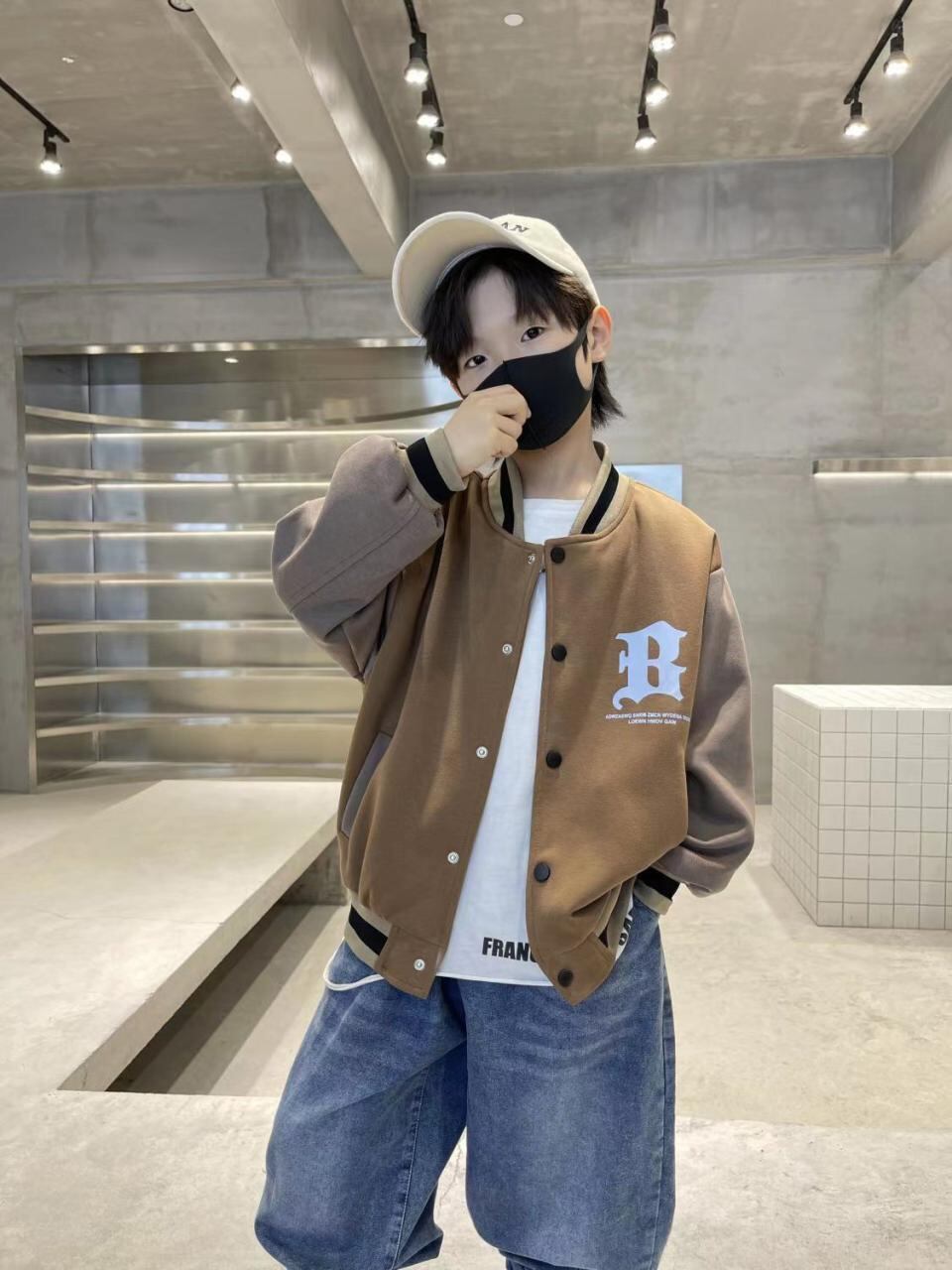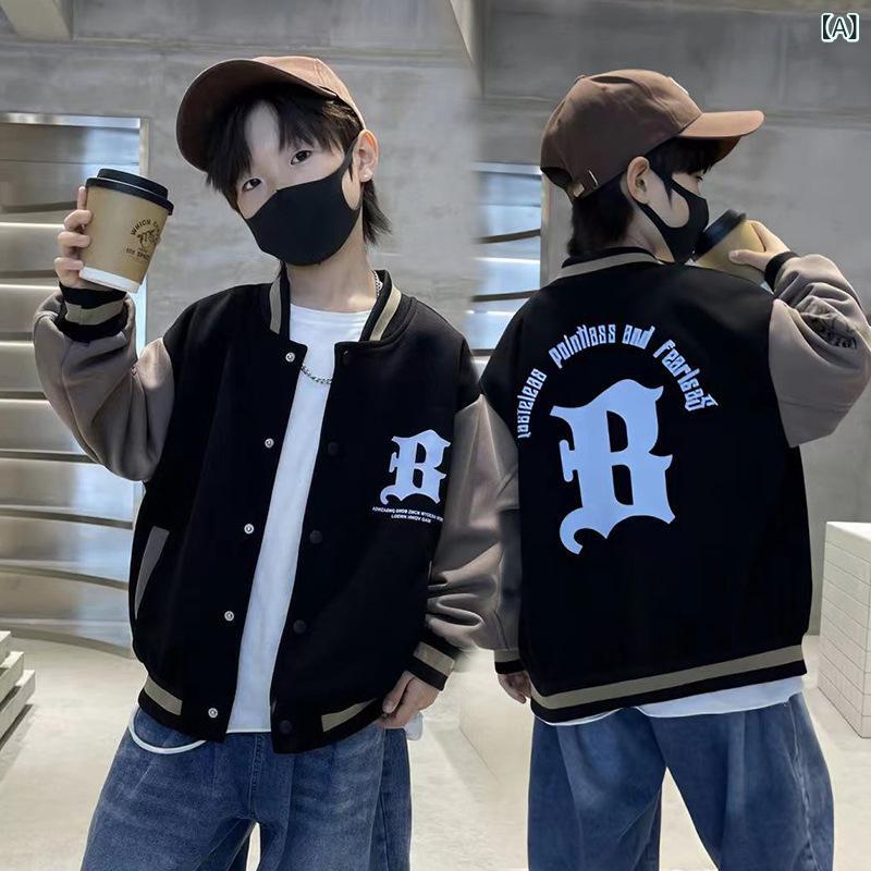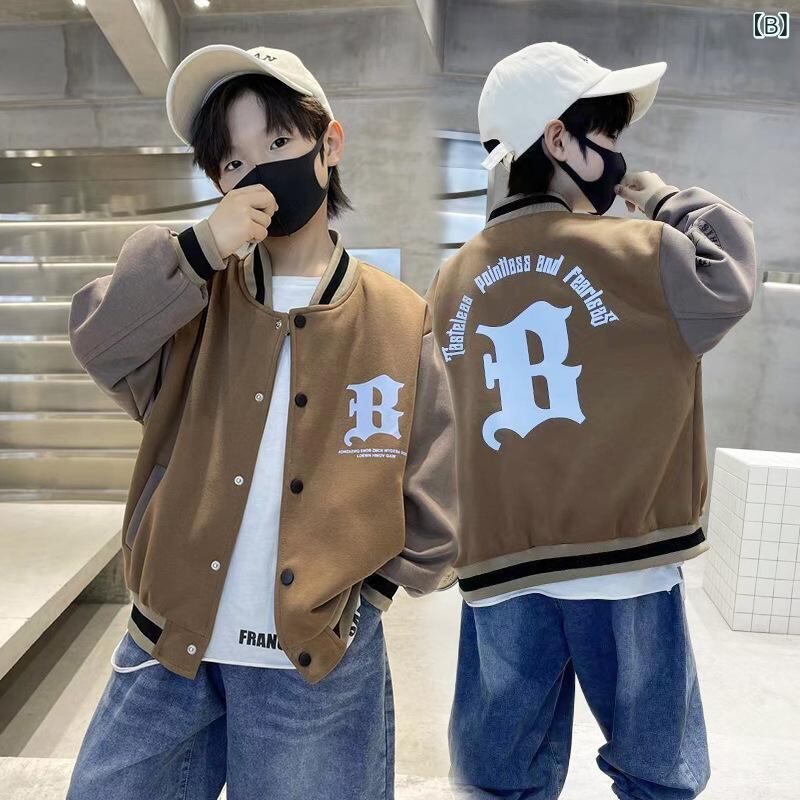 子供服 ジャケット 男女兼用 長袖 ベースボールジャケット ゆったり カジュアル スナップボタン留め トップス 黒 ブラック コーヒー色 120cm 130cm 140cm 150cm 160cm 170cm