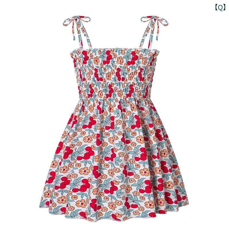 ワンピース 女の子 ベビー 子供服 ファッション 吊りスカート サスペンダースカート フラワープリント コットン 春夏 かわいい 幼児 園児 保育園着 普段着 お出かけ着