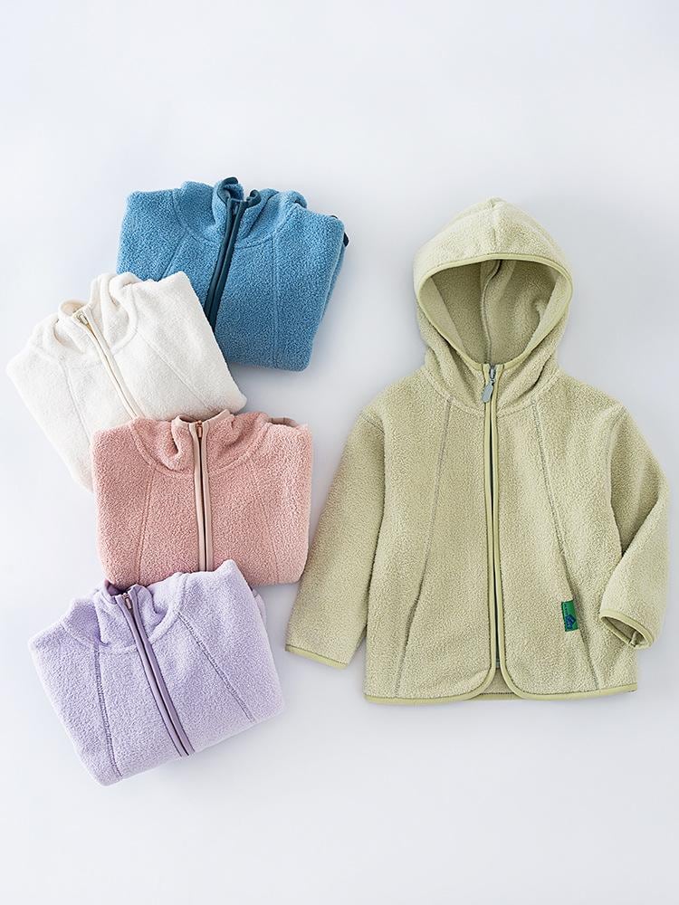 子供服 アウター フリース ジャケット パーカー 裏起毛 幼児 小学生 男の子 女の子 無地 防寒 110cm 120cm 130cm 140cm 150cm 160cm クリーム ホワイト 嫩芽 グリーン ピンク パープル スカイブルー 秋冬