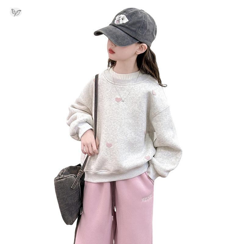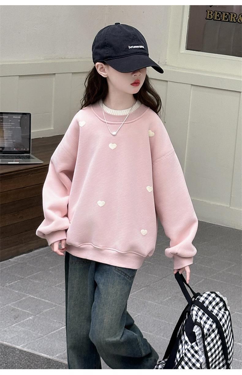 子供用スウェット ガールズ 秋冬 裏起毛 トップス 韓国風 おしゃれ 一体型 重ね着風 かわいい 普段着 部屋着 8歳 9歳 10歳 11歳 12歳 13歳 14歳 15歳 16歳 綿 ピンク グレー