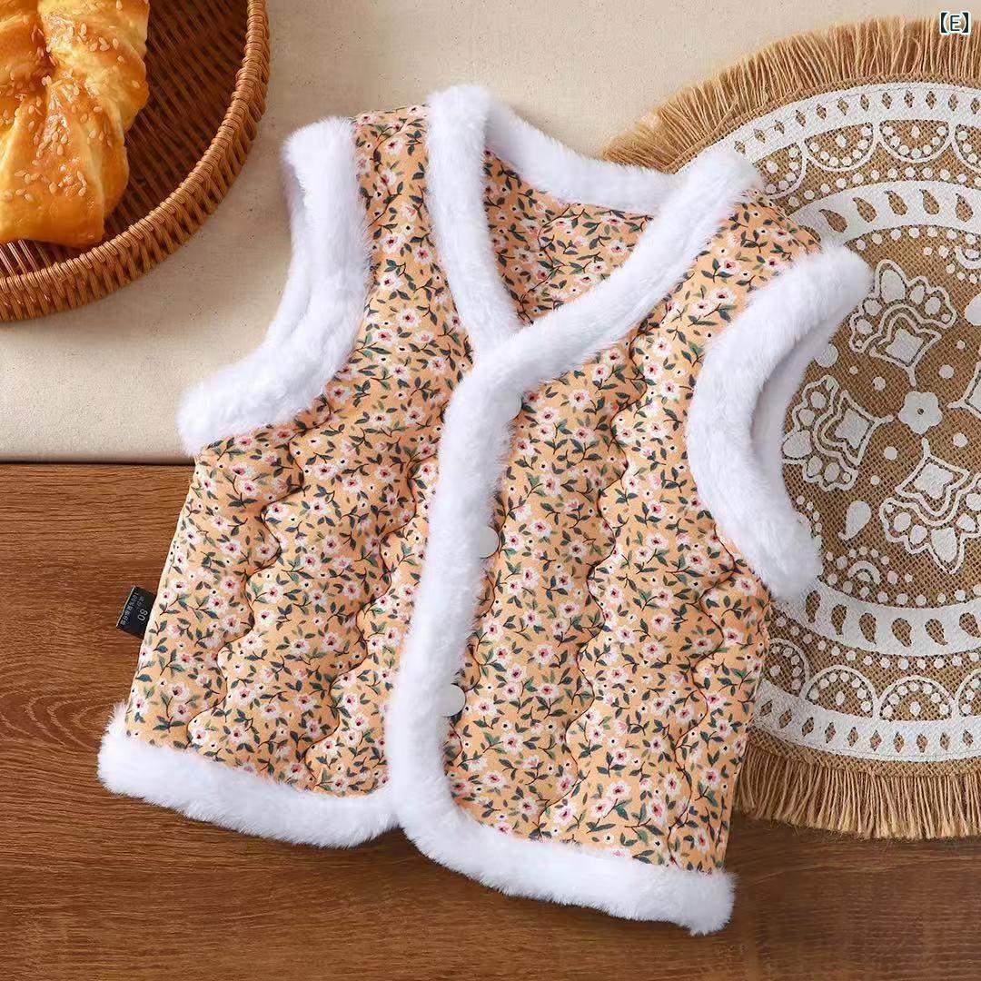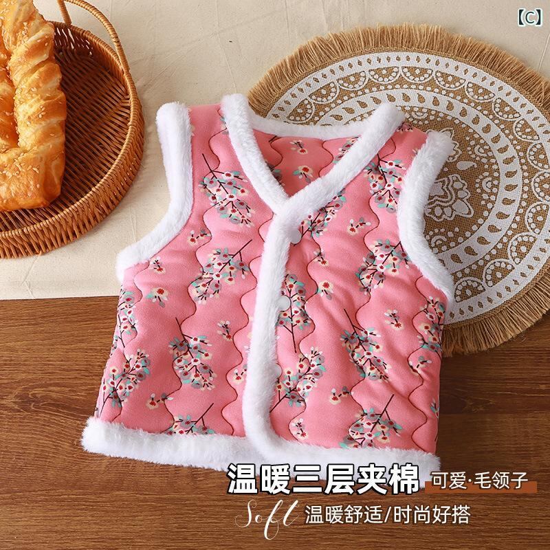子供服 ベスト 女の子 ベビー 中綿入り チョッキ 極暖 防寒 アウター 花柄 ポリエステル ピンク系 イエロー系 裏地付き 80cm 90cm 100cm