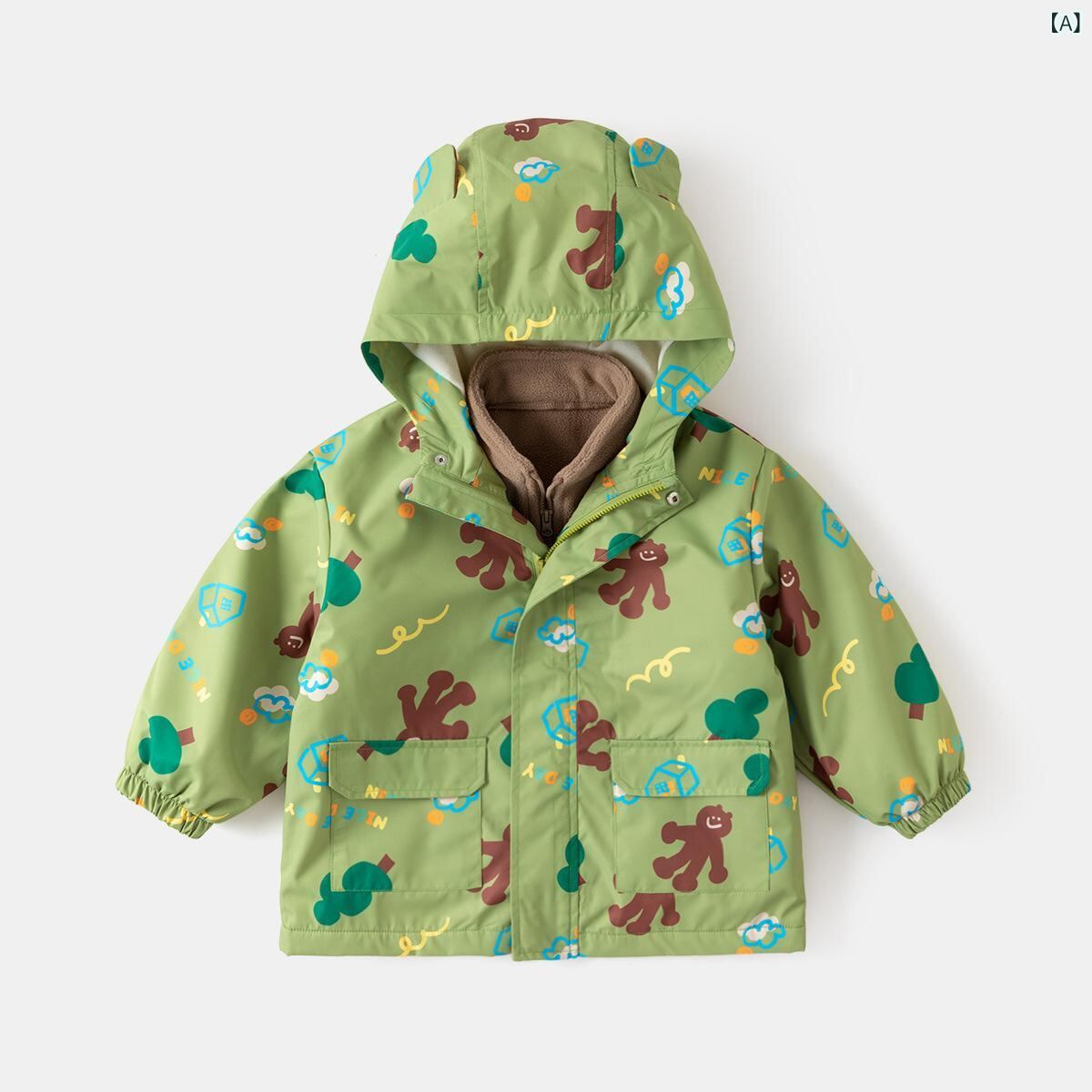 子供服 ジャケット ベビー服 アウター 女の子 秋冬 防寒 暖かい 裏起毛 フリース かわいい クマ ウサギ ベージュ ピンク イエロー