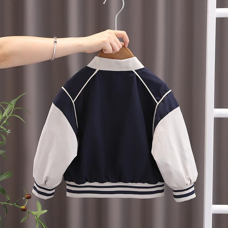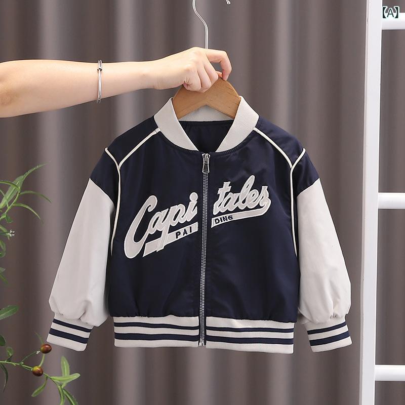 子供服 ジャケット 男の子 長袖 アウター 丸首 配色 アルファベット柄 プリント カジュアル 春秋 綿 普段着 幼稚園 保育園 小学生 80cm 90cm 100cm 110cm 120cm