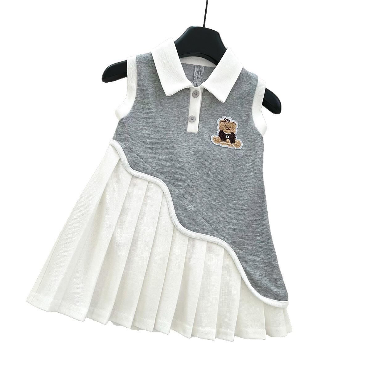 ワンピース 女の子 夏 子供服 かわいい カレッジスタイル 小熊柄 Aライン ノースリーブ 普段着 発表会 お呼ばれ グレー ピンク系 ブルー