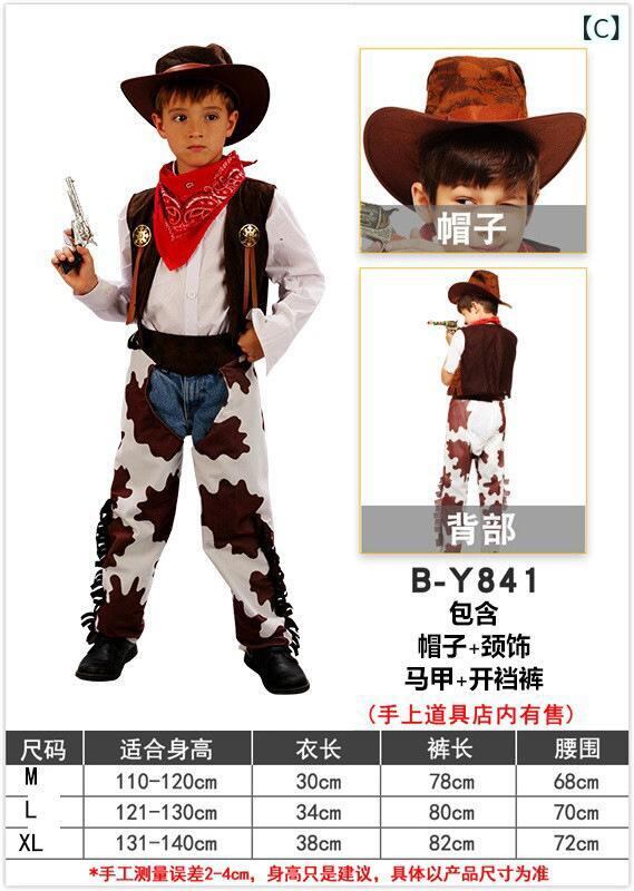 ハロウィン コスチューム 親子 男性用 女性用 ウェスタン カウボーイ 衣装 キッズ 子供用 パーティー 舞台 発表会 イベント ポリエステル(x2)