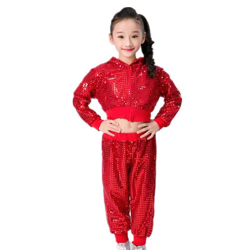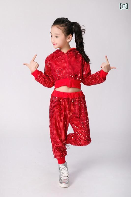 子供用ダンス衣装 上下セット チアリーディング 練習着 ジャズ ヒップホップ ストリートダンス スパンコール 舞台 演出服 コスチューム 男の子 女の子 100cm 110cm 120cm 130cm 140cm 150cm 160cm イエロー レッド