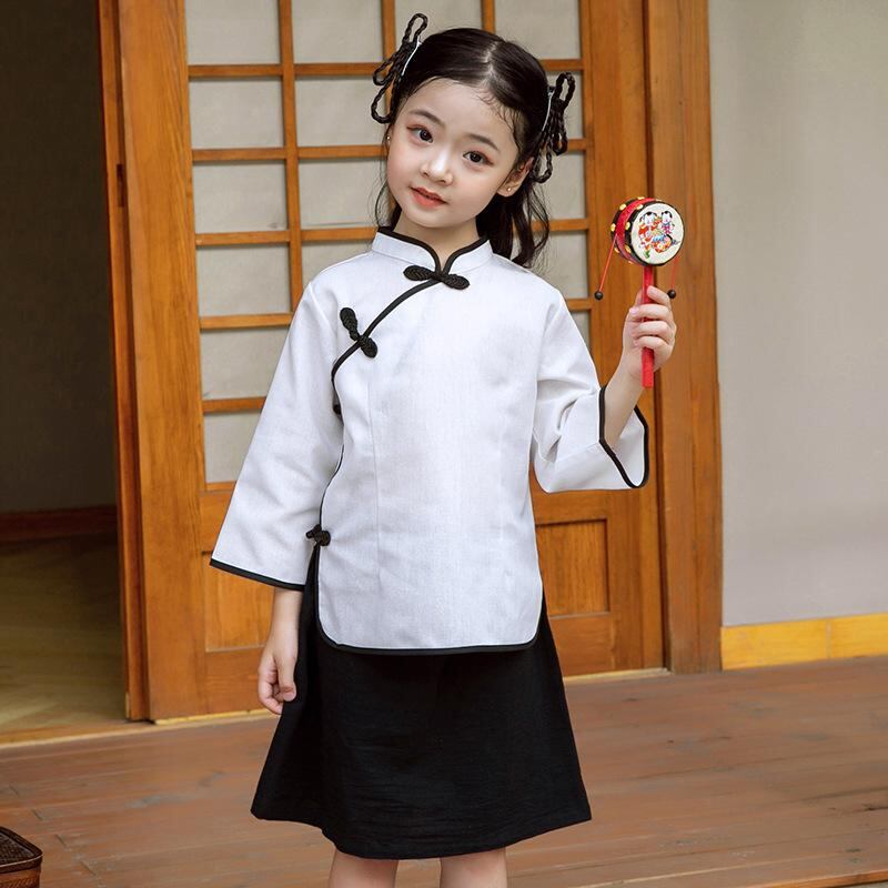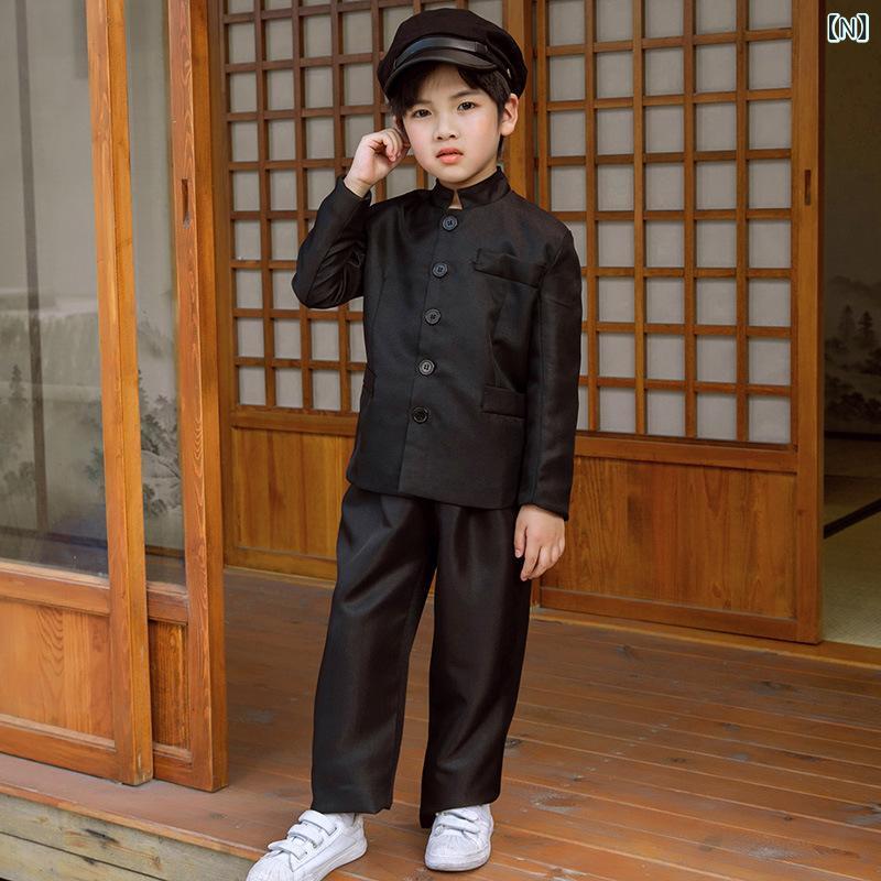 子供用 コスチューム 民族衣装 中華風 舞台衣装 合唱衣装 発表会衣装 五四青年服 学生服 上下セット スカート パンツ 綿 麻