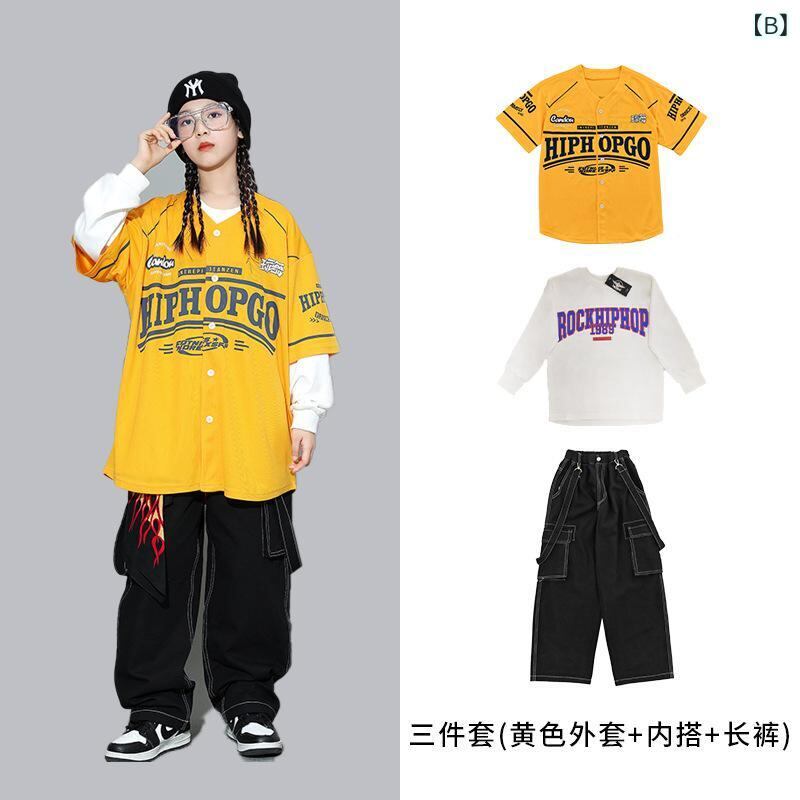 キッズ ダンス 衣装 セットアップ ヒップホップ ベスト パンツ 女の子 男の子 ジャズ 発表会 舞台 演出服 ポリエステル イエロー ブラック ホワイト