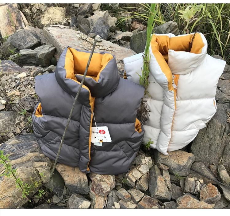 子供服 ベスト 中綿入りベスト キッズ 男女兼用 スタンドカラー アウター 防寒 チョッキ 幼児 小学生 撥水 無地 かわいい 秋冬 イエロー グレー ブラック ベージュ ピンク系