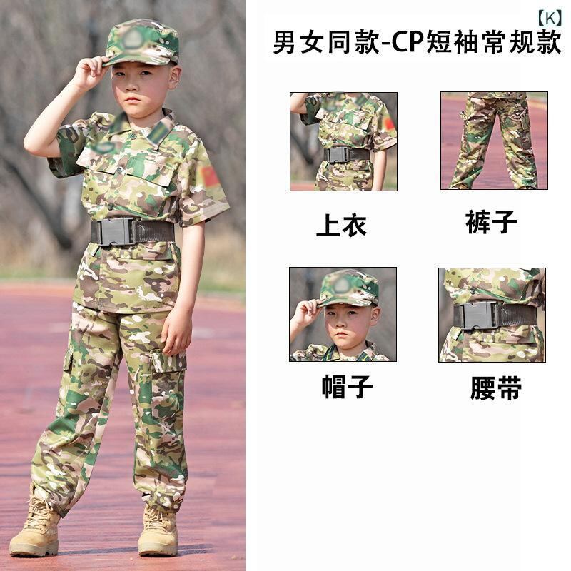 子供用 迷彩服 セットアップ 小学生 幼稚園 夏のキャンプ 軍隊 特殊部隊 男の子 女の子 軍服 トレーニングウェア トップス ボトムス 帽子付き 通気性 吸湿性 耐摩耗性