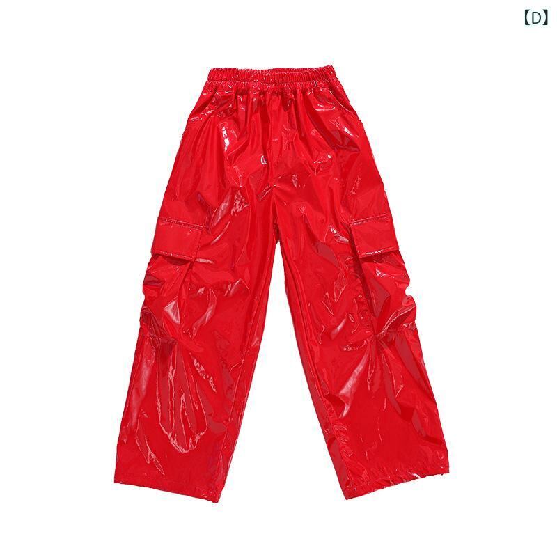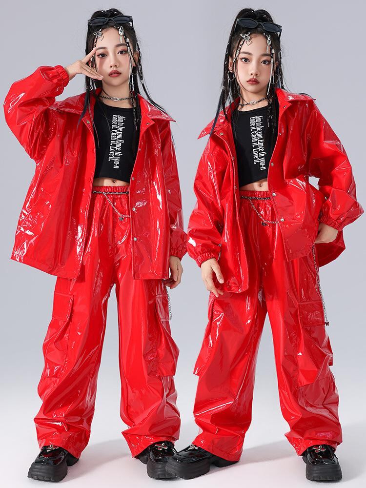 ダンス衣装 キッズ 女の子 ジャズダンス セットアップ へそ出し トップス パンツ スポーティー 舞台 演出服 ヒップホップ ストリートダンス 練習着 レッスン着 ポリエステル 赤 黒