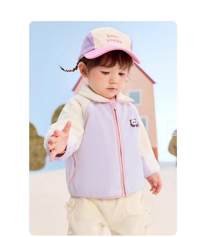 子供服 アウター ベビー服 ジャケット 秋冬 男女児 両面フリース トップス 幼児 立ち襟 長袖 スポーツ風 かわいい カートーン 水玉模様 厚手 プリンセス ゆったり 普段着 ポリエステル100% ホワイト グリーン パープル ブルー ピンク 80 9