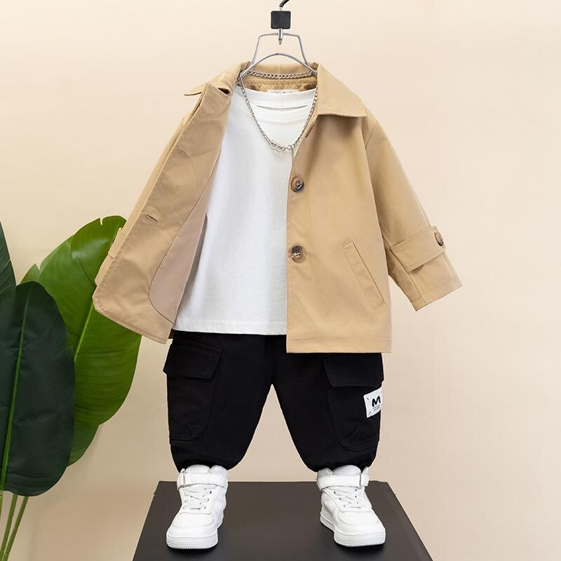 キッズ 男の子 ジャケット 春秋 無地 アウター 子供 服 ボーイズ おしゃれ カッコいい トレンチコート風