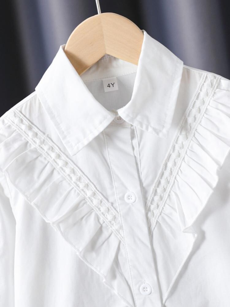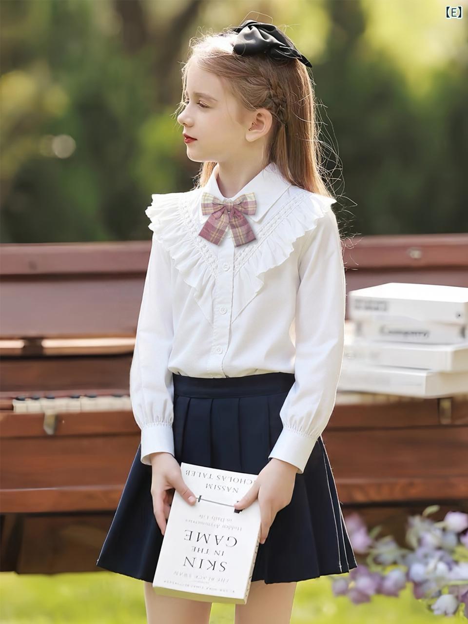 シャツ ガールズ 子供服 白シャツ ブラウス 長袖 コットン 学院風 襟付き トップス 無地 春秋 冬 110 120 130 140 150 160