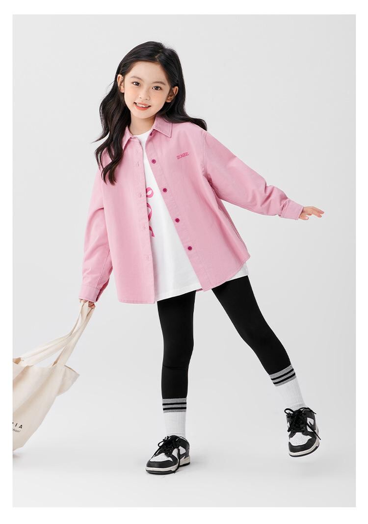 シャツ ガールズ 子供服 長袖 コットン 春秋 女の子 トップス アウター 上着 羽織り かわいい カジュアル ピンク系