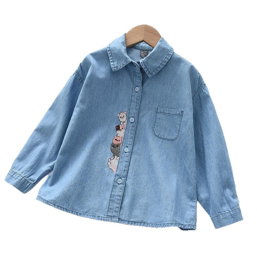 シャツ 子供服 春秋 長袖 デニムシャツ 女の子 女児 薄手 綿100% 柔らかい かわいい 普段着 100 110 120 130 140 150 160 ピンク系 白
