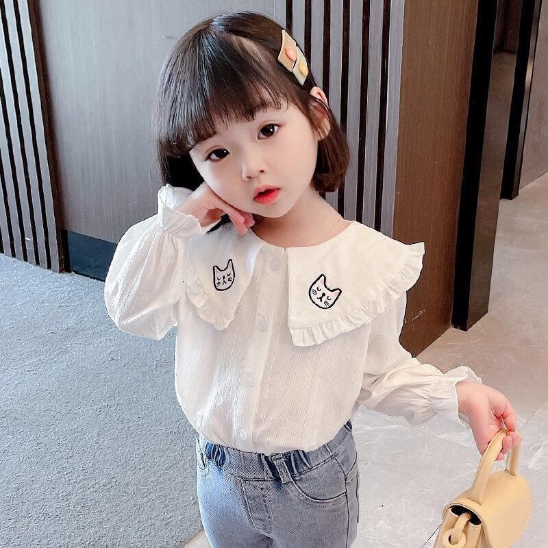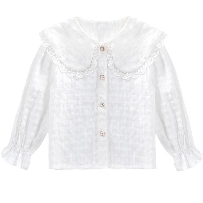 子供服 シャツ 女の子 長袖 ブラウス キッズ 白シャツ 襟付き トップス かわいい 上着 子供 ベビー 花柄 レース 春秋 コットン