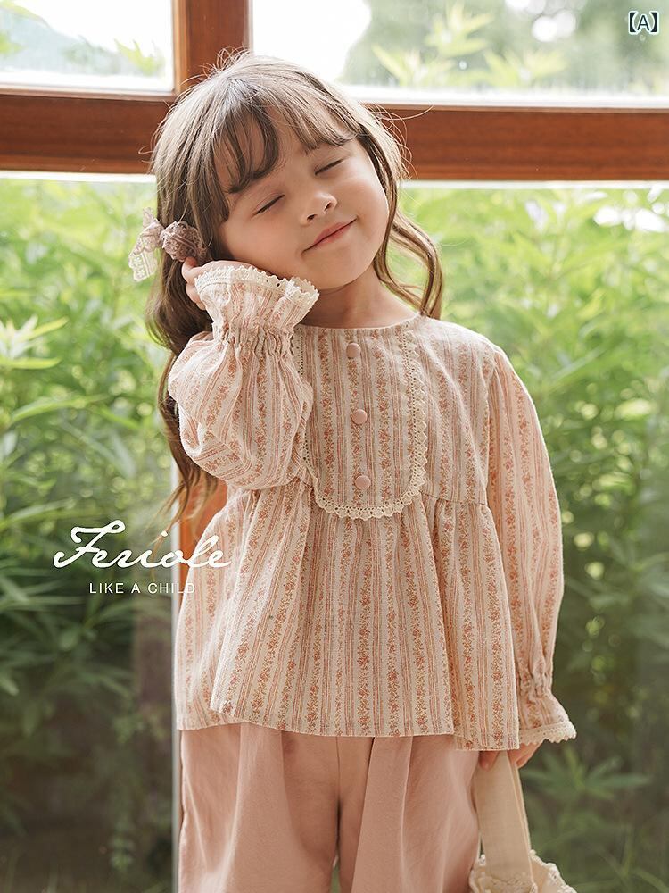 子供服 女の子 シャツ ワンピース風 春秋 長袖 花柄 チュニック かわいい 襟付き トップス ブラウス カットソー 子供 キッズ ベビー 幼児 ガーリー