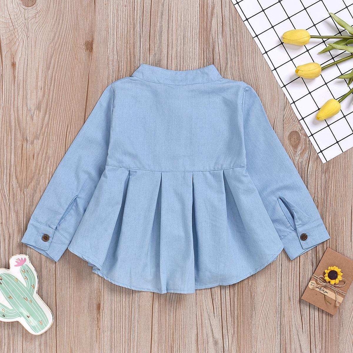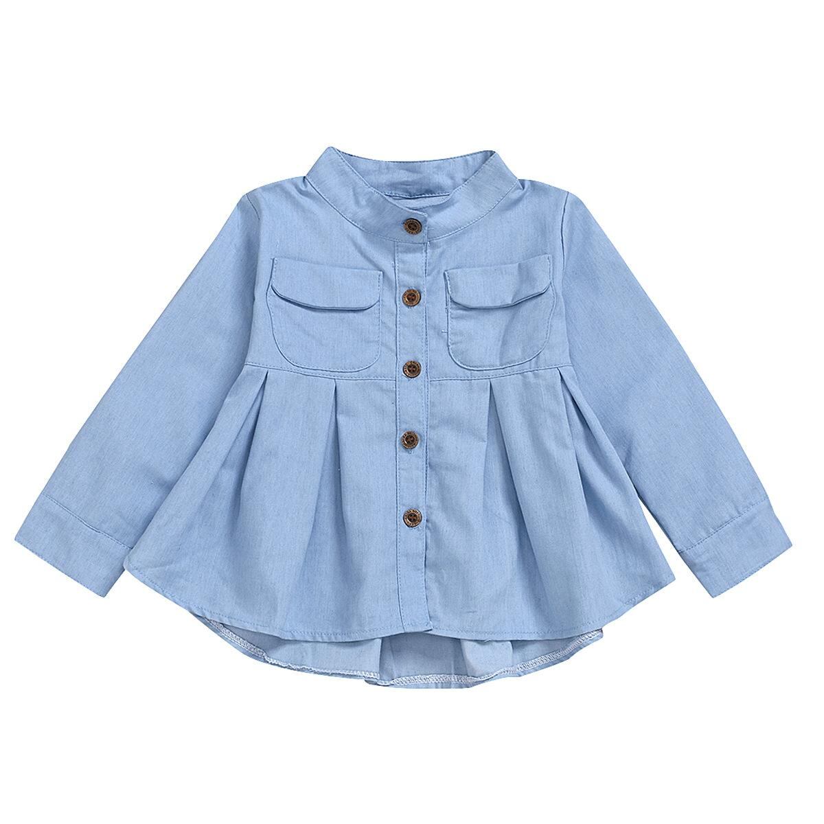 シャツ ガールズ ベビー キッズ 長袖 立襟 デニム トップス 春秋 綿100% 子供服 チュニック ブラウス 普段着 かわいい 公園着