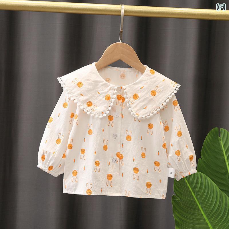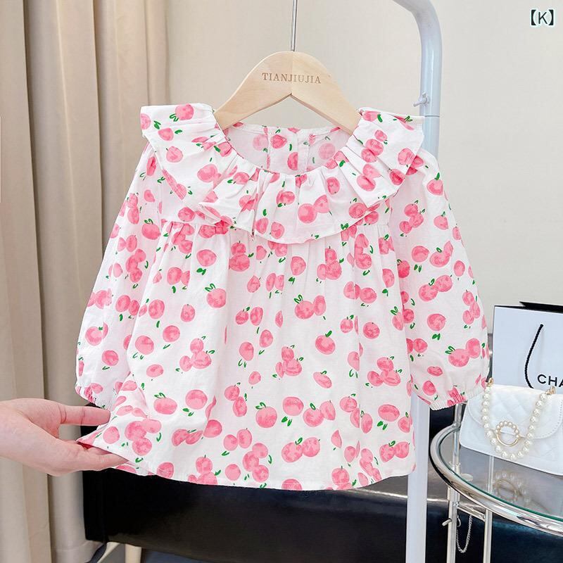 シャツ 女の子 ベビー 長袖 春秋 かわいい チュニック 幼児 トップス ガーリー おしゃれ 花柄 イチゴ柄 綿100% 子供服 80 90 100 110 120
