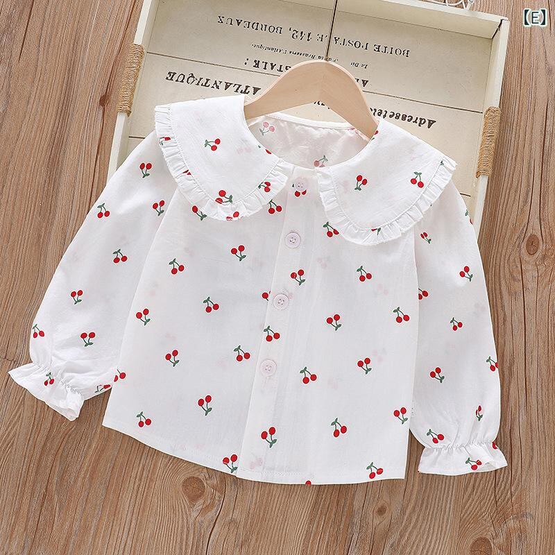 シャツ ガールズ 子供服 長袖 春秋 綿100% 襟付き 花柄 韓国風 トップス かわいい おしゃれ着 80cm 90cm 100cm 110cm 120cm 130cm 140cm