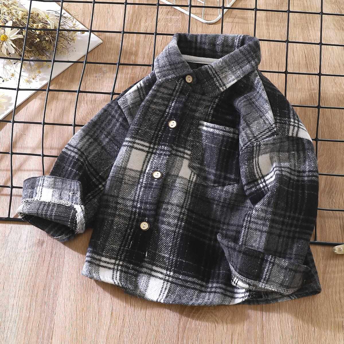 シャツ キッズ 長袖 格子柄 春秋 秋冬 レトロ 切り替え オープンカラー トップス 子供服 男の子 女の子 90 100 110 120 130 140 150 | Kneebaファッションショップ