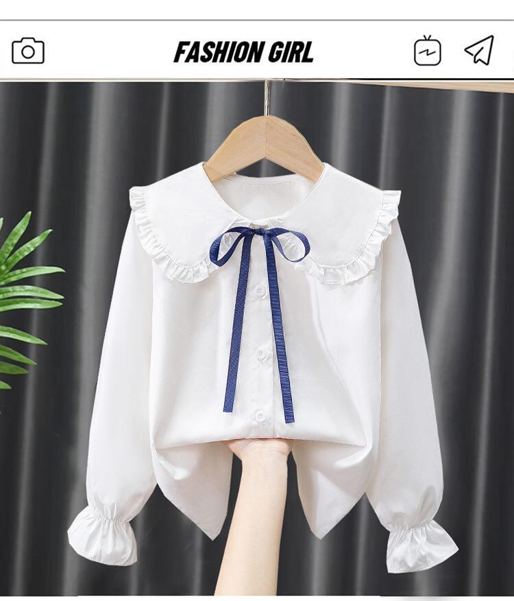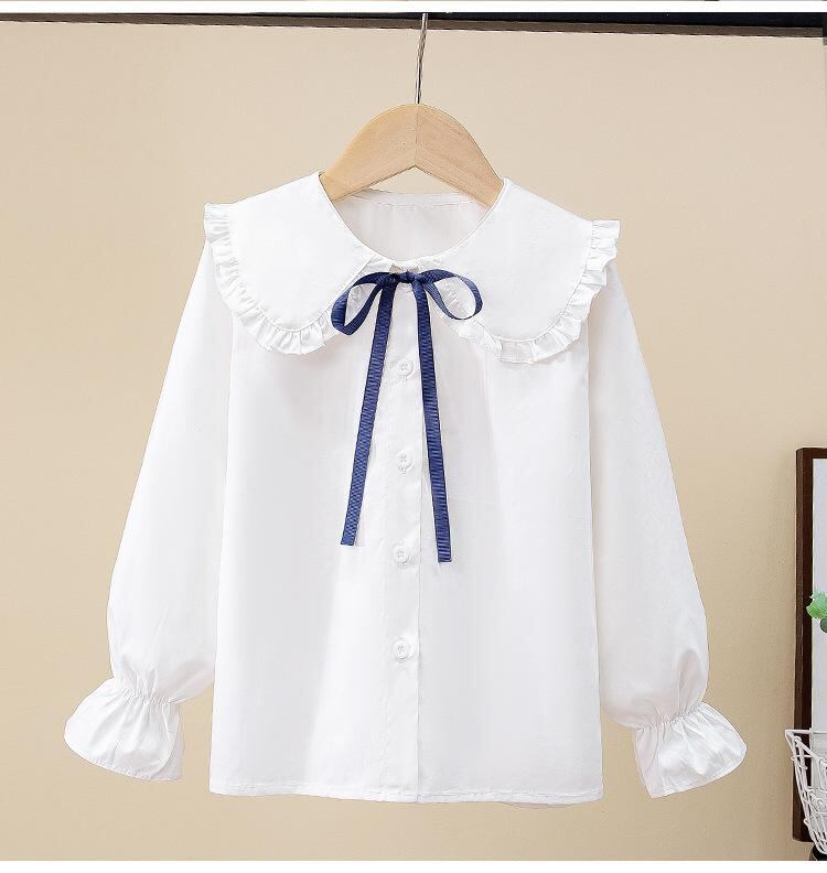 シャツ 女の子 子供服 長袖 コットン トップス 春秋 キッズ ガールズ ブラウス 無地 ミルキーホワイト 110cm 120cm 130cm 140cm 150cm 160cm