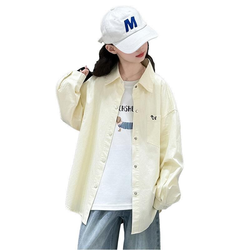 シャツ ガールズ キッズ 長袖 コットン 春秋 ブラウス 子供服 トップス 130cm 140cm 150cm 160cm 170cm ブルー イエロー 犬