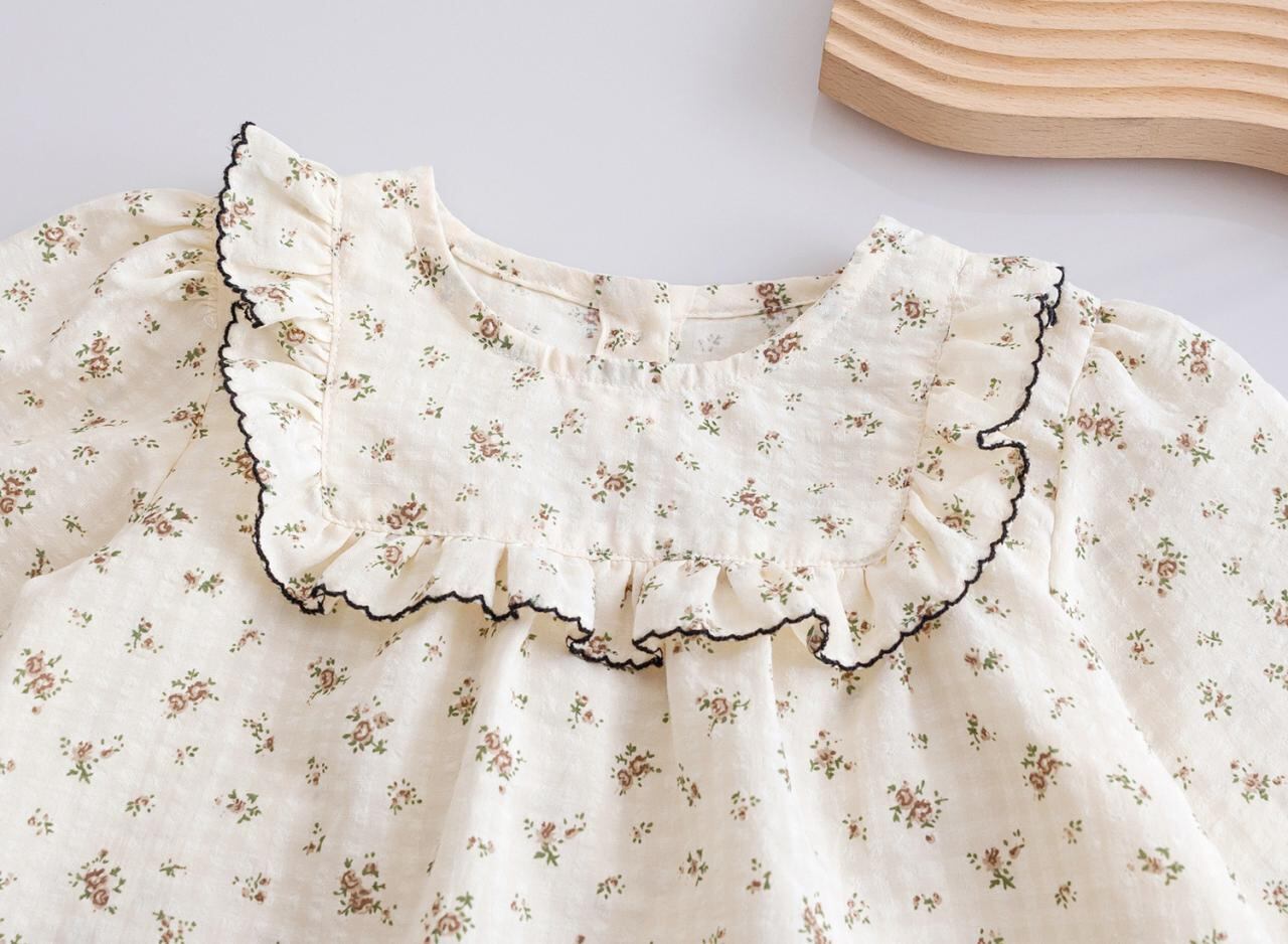シャツ 女の子 子供服 ガーリー 丸襟 長袖 コットン 花柄 フラワープリント ブラウス トップス 春秋