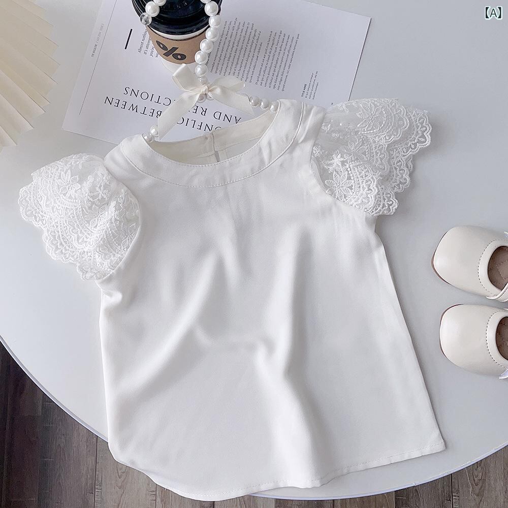 シャツ キッズ 半袖 丸首 レース トップス 女の子 子供服 インナー ポリエステル100% かわいい 白色