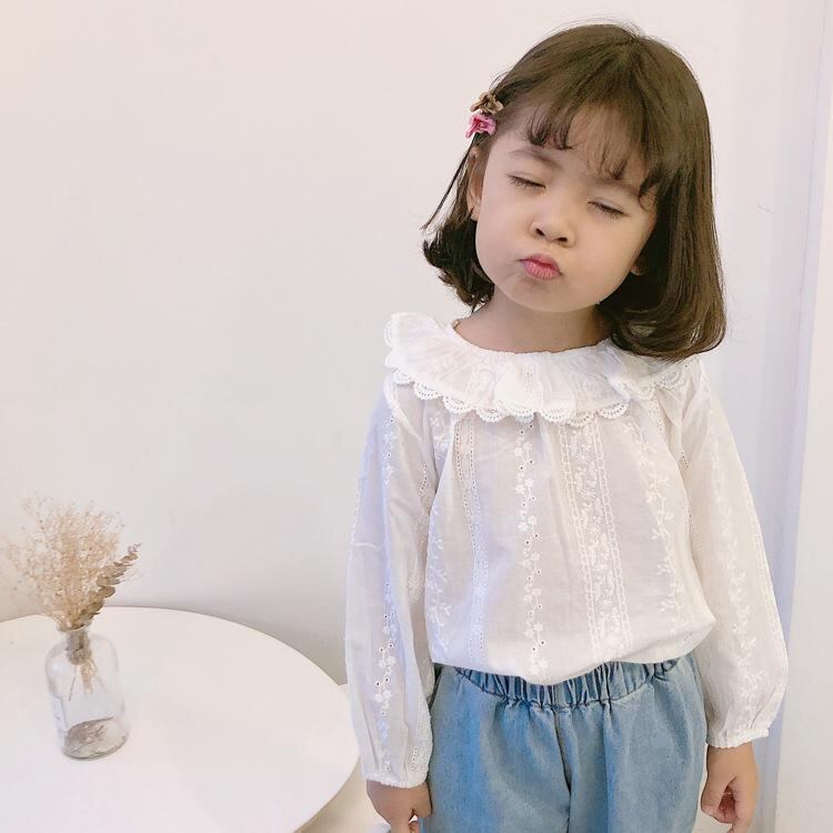 シャツ 女の子 長袖 子供服 春秋 花柄 レース襟 ブラウス ピュアカラー ドールシャツ 綿 80cm 90cm 100cm 110cm 120cm 130cm